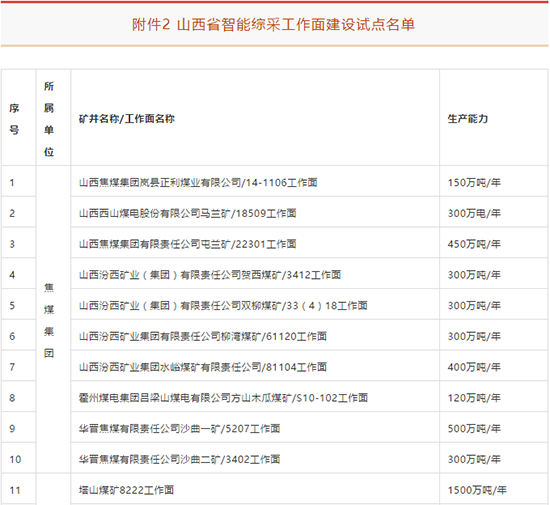 刚刚公布!山西确定10座煤矿 50个智能综采工作面建设试点