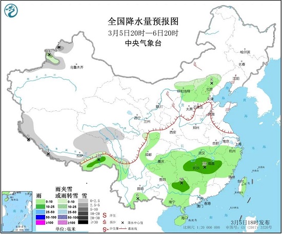 今日天气 :内蒙古中部、新疆西北部、西藏南部和东部、青海南部等地部分地区有小到中雪或雨夹雪。西藏东南部、华北北部、江汉南部、江南大部、西南地区东部、华南中西部、海南岛、台湾岛大部等地部分地区有小到中雨。