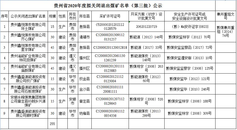 贵州省能源局最新公布!2020年第三批关闭煤矿名单,煤机人必看!