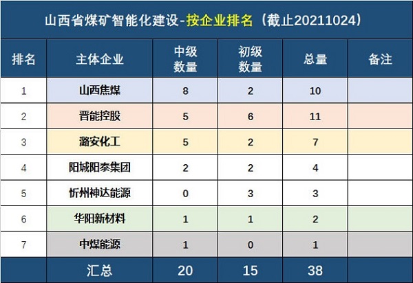 2.从建设数量上来看晋能控股最强总量有11个。