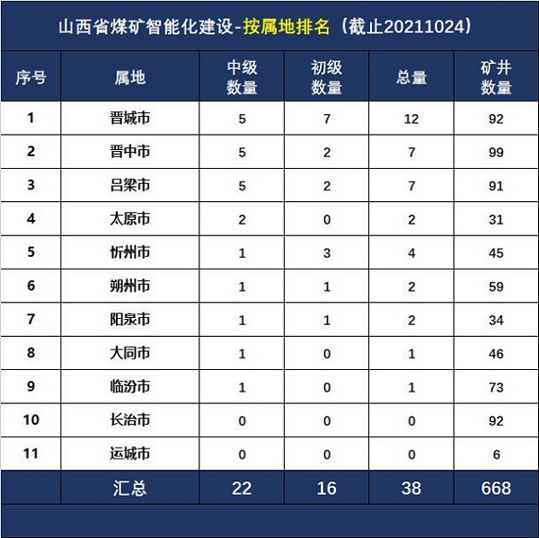 重磅公布!山西省11个地级市“煤矿智能化采煤”668座