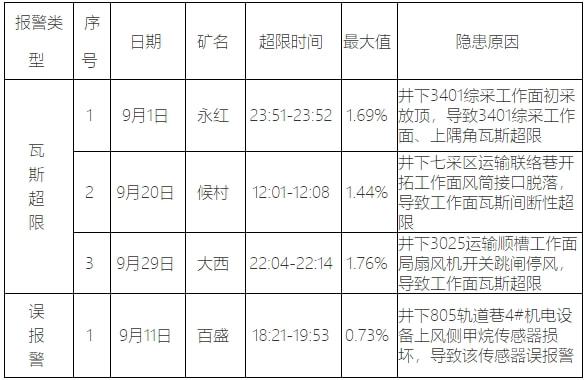 (一)全市煤矿安全监控系统闭锁功能测试10506次,煤矿瓦斯超限3次,误报警1次,具体如下: