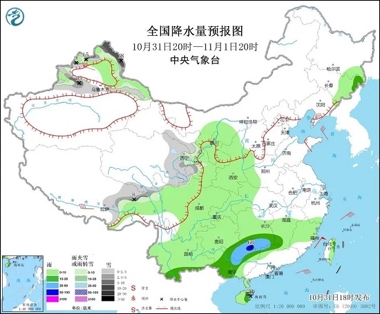 1、今日天气:新疆北部、青海东部、甘肃西南部和河西走廊、川西高原北部、西藏东北部等地部分地区有小到中雪或雨夹雪,其中,新疆塔城、沿天山及阿勒泰等地的高海拔地区有大到暴雪。吉林东部、江南南部、云南南部、华南北部和西部等地部分地区有中到大雨。