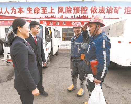 8、近日,陕西省神木市检察院检察官来到国家能源集团神东榆家梁煤矿开展安全生产法宣传活动,并与矿区工人交流安全风险防控与权益维护情况。