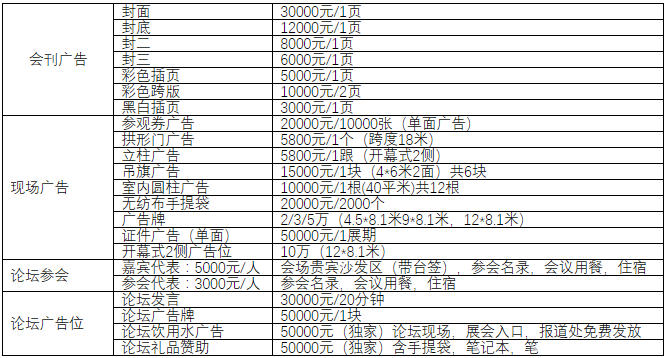 为进一步协助参会单位拓展合作、多维度推介参会单位的品牌、形象、产品、技术及服务等,扩大参会单位在行业的品牌传播与形象提升,彰显参会单位的行业领先地位, 大会组委会特推出极少量的战略合作机会,按照总冠名 88 万元、特别协办 38 万元、协办 18 万元,如有需要,可与大会组委会联系,协商相关事项。