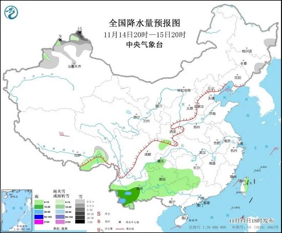 1、今日天气:黑龙江东部、吉林东部、新疆北部等地部分地区有小到中雪或雨夹雪。西藏东南部、湖南南部、四川盆地东南部、西南地区南部、华南北部等地部分地区有小到中雨。