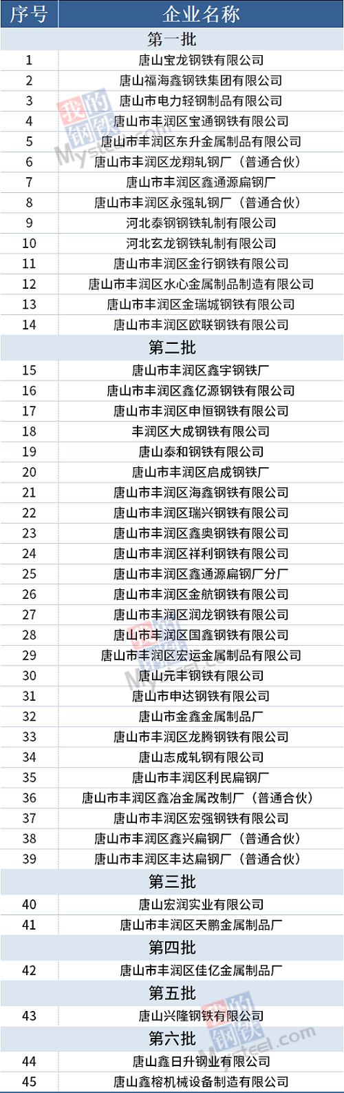 7、据唐山市生态环境局消息,唐山独立轧钢企业环保整治提升验收从2021年8月18日开始启动,先后分六批对通过验收的企业名单予以公示。