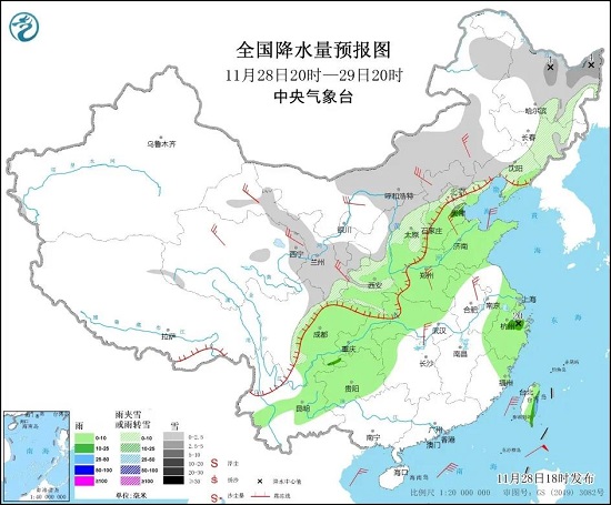 1、今日天气:西北地区中部和东南部、华北西部和北部、东北地区北部和东部等地部分地区有小到中雪或雨夹雪。西北地区东南部、西南地区东部、华北中南部、辽宁南部、黄淮大部、江淮东南部、江南东部、台湾岛等地部分地区有小到中雨。