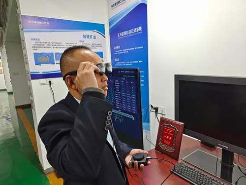 井上工作人员运用AR眼镜进行井上井下联动。新华社记者王劲玉 摄