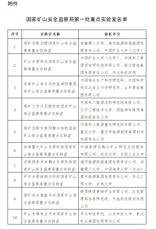 近日,国家矿山安全监察局网站发布关于批准建设第一批重点实验室的通知,批准建设“煤矿瓦斯治理”等10家重点实验室。