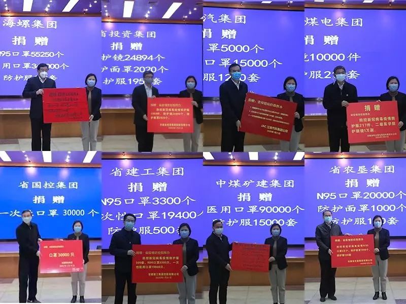 5、1月31日下午,安徽省疫情防控工作领导小组和省应急指挥办公室在省卫健委联合举行疫情防控物资捐赠仪式。皖北煤电集团党委副书记、总经理袁兆杰代表皖北煤电集团向省卫健委捐赠了1万副二级医学防护镜、217套医用防护服。