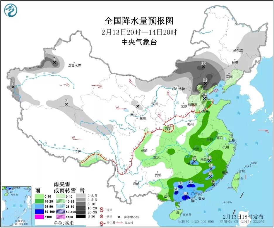 1、今日天气:华北、东北、新疆、西藏、青海等地部分地区有小到中雪或雨夹雪,其中内蒙古中部和东南部、河北北部、北京、天津中北部、辽宁西部以及新疆伊犁河谷等地部分地区有大到暴雪。江淮、江汉、江南、华南等地部分地区有中到大雨,其中广西东部、广东中西部和南部沿海等地部分地区有暴雨。