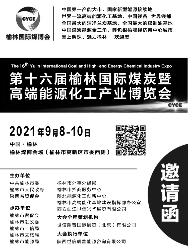 为深入贯彻落实以习近平新时代中国特色社会主义思想,充分展现“十三五”以来贯彻落实能源安全新战略的工作成绩,分析把握“十四五”能源发展的新任务新要求,推进能源供给侧结构性改革,不断优化能源供给结构,推动能源绿色转型发展,推进能源清洁低碳高效利用,坚持创新驱动发展,助力能源企业补齐产业链安全短板,促进我国煤炭工业高质量发展,为能源企业提供一个开放交流的平台,充分发挥政府职能,由中共榆林市委、榆林市人民政府、陕西省贸促会等单位主办的第十六届榆林国际煤炭暨高端能源化工产业博览会,将于2021年9月8日-10日在中国•榆林隆重举行。