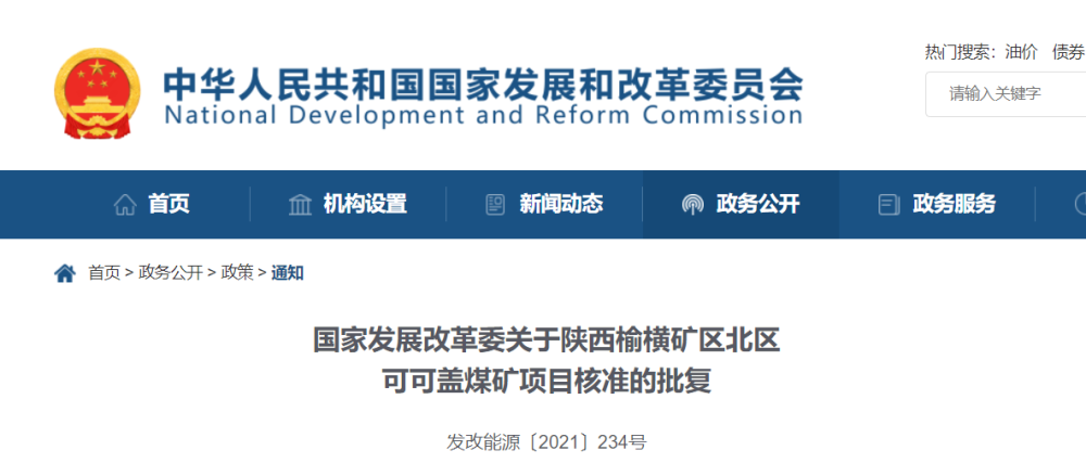 3月4日,国家发展改革委官网发布消息,为推进陕北大型煤炭基地建设,保障能源稳定供应,优化煤炭产业结构,国家发改委同意实施煤炭产能置换,建设陕西榆横矿区北区可可盖煤矿项目。项目单位为陕西延长石油榆林可可盖煤业有限公司,项目建设地点位于榆林市榆阳区。