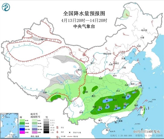 1、今日天气:青海南部、西藏东部、川西高原北部等地的部分地区有小雪或雨夹雪。江南大部、华南北部、贵州中东部、四川盆地西部和东部等地的部分地区有中雨,局地有大雨。