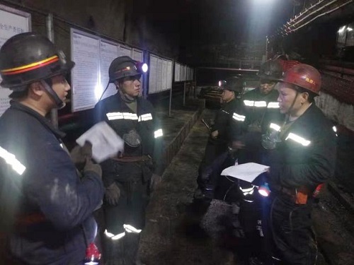 5、近日,安顺煤矿安检员到采煤工作面认真进行安全检查,并询问现场正在检修采煤机人员。