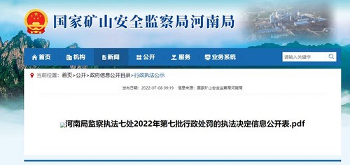 8、央广网北京7月14日消息 7月8日,国家矿山安全监察局河南局发布河南局监察执法七处2022年第七批行政处罚的执法决定信息公开表,河南神火煤电股份有限公司(下称神火股份)旗下多家煤矿因存在多项违规被罚款。