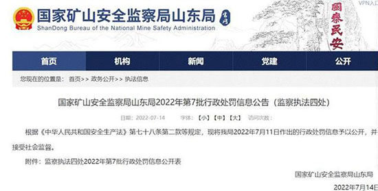 5、央广网北京7月17日消息 7月14日,国家矿山安全监察局山东局发布2022年第7批行政处罚信息公告,山东东山新驿煤矿有限公司因存在多项违规被处罚。