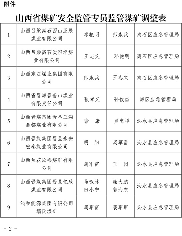 刚刚!山西省煤矿安全监管专员调整(内附名单)