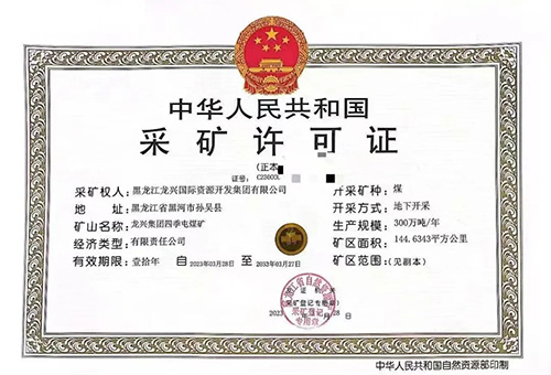 3月28日,孙吴县四季屯煤矿(5区)《采矿许可证》成功获批,这也是自省交投集团成立4年、龙兴集团成立18年来首次自主勘查、自主申领获批的首张采矿许可证。