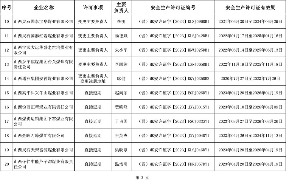 山西省应急管理厅关于颁发煤矿(企业)安全生产许可证的公告