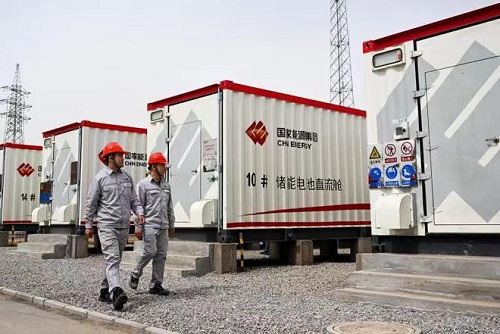 2、4月13日,在国家能源集团乌海能源公司黄白茨光储电站,工人在巡检储能装置。