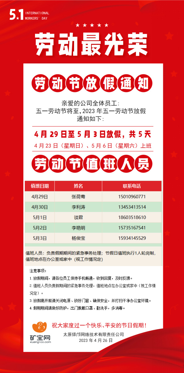 5.1劳动节放假通知!