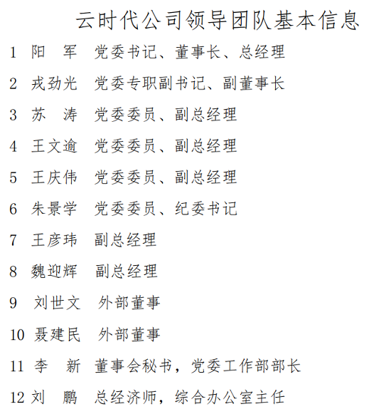 近日,山西云时代技术有限公司官网领导班子名单进行更新,阳军担任党委书记、董事长、总经理。值得注意的是,这是阳军第二次担任云时代“掌门人”。