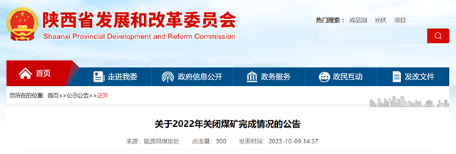 近日,陕西省发改委发布《关于2022年关闭煤矿完成情况的公告》。